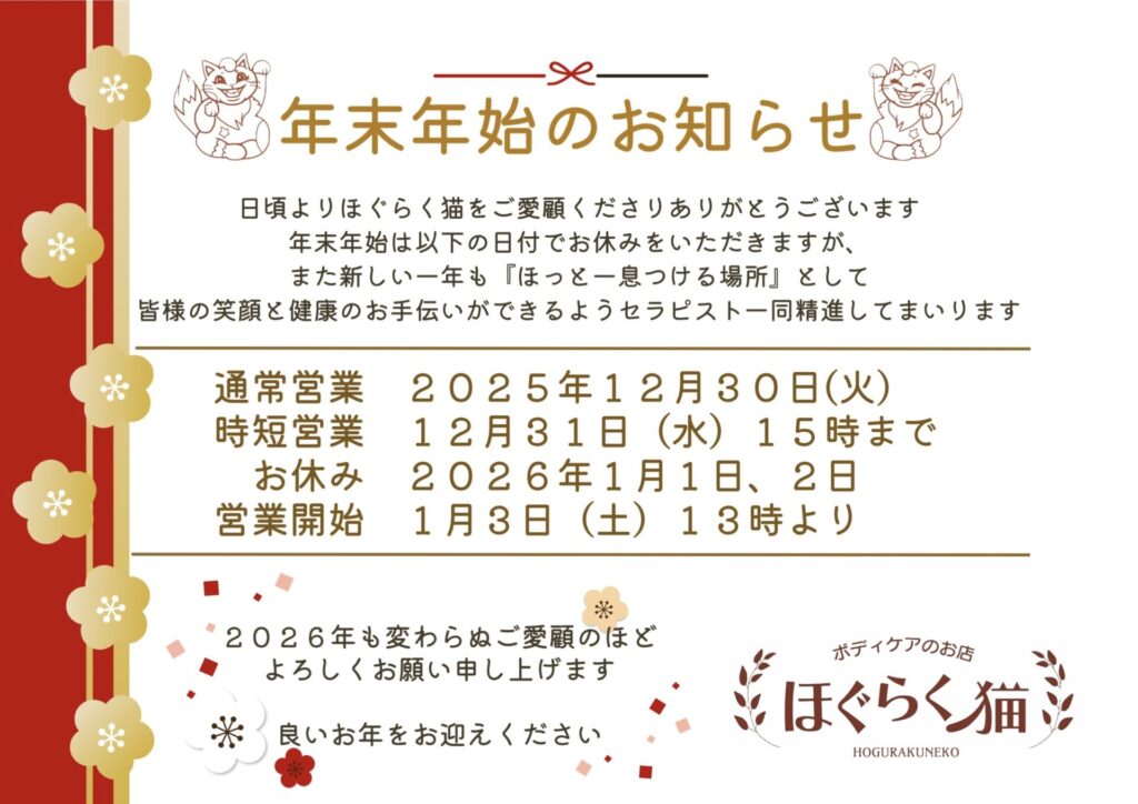 ※ほぐらく猫から「お知らせ」がございます。ご来店前にお読みください。